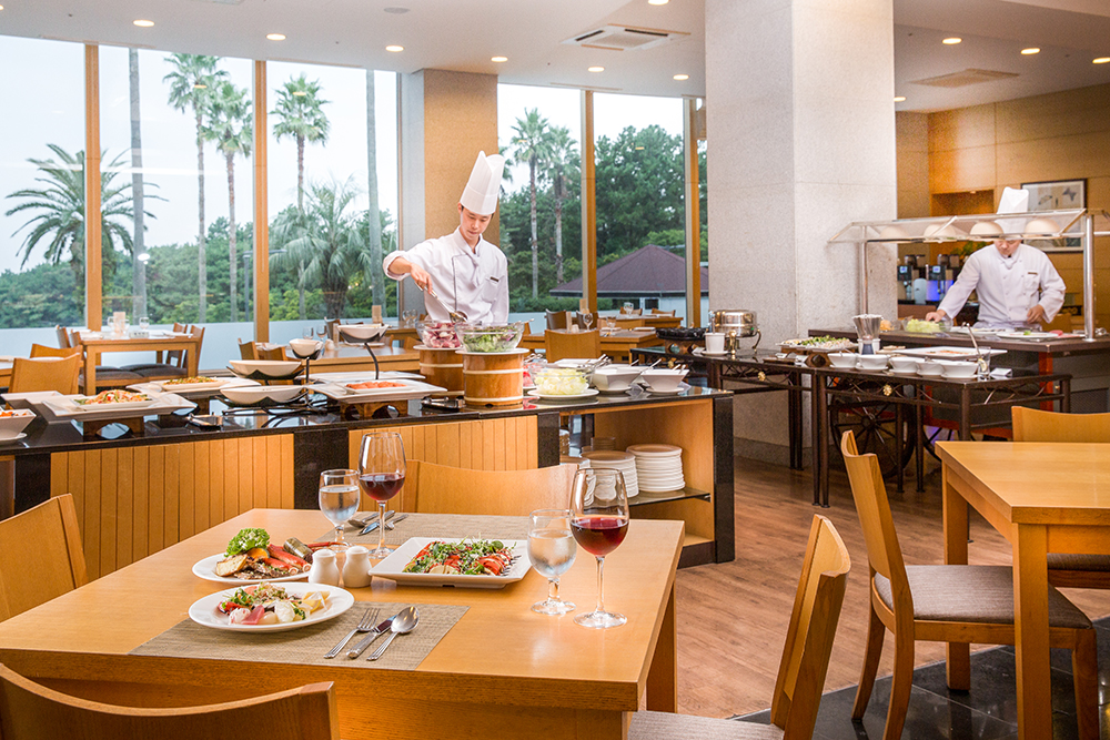 환상의 섬 제주의 화려한 전경을 바라보며 숙련된 셰프들이 제주의 청정 식재료로 준비하는 다채로운 메뉴들을 즐길 수 있습니다.