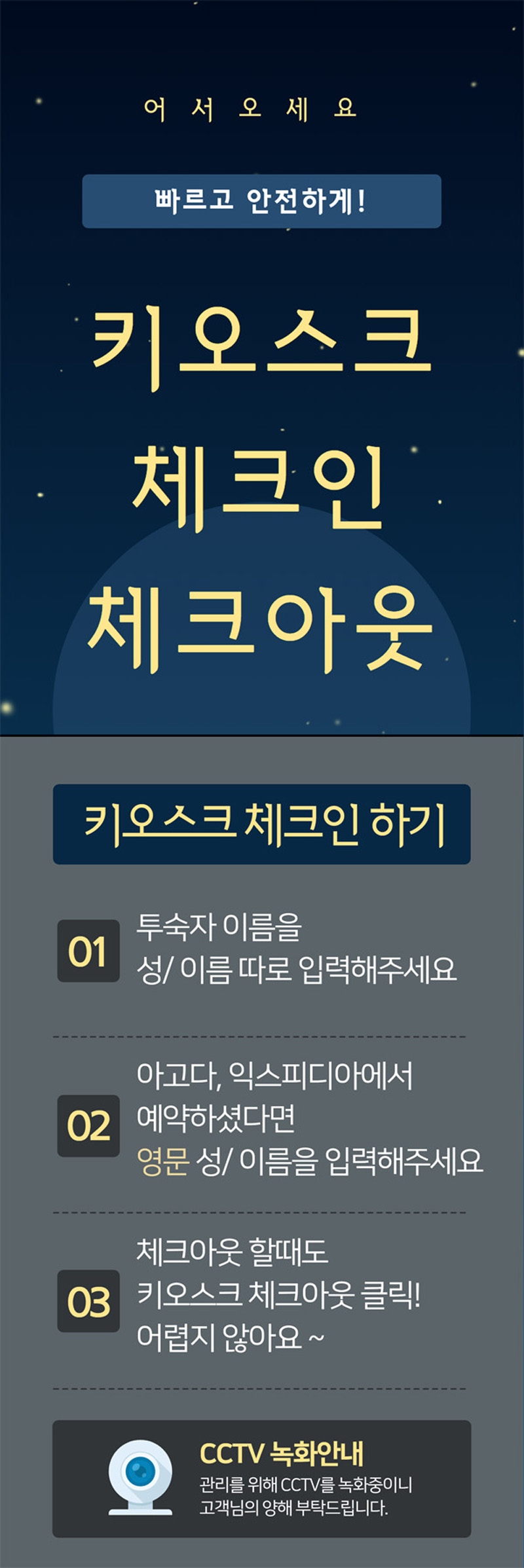 키오스크 사용법 : 키오스크에 투숙자의 이름을 기입해주세요.