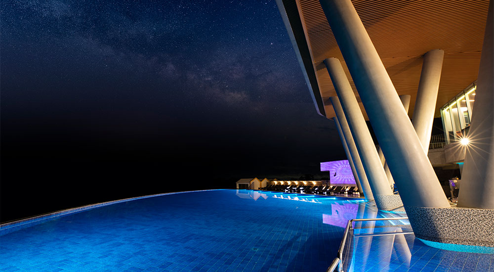 국내 최대 47m를 자랑하는 인피니티 풀은 1년 365일 이용 가능한 사계절 온수풀입니다.