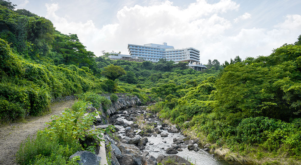 제주도 원시림에 둘러싸인 채 지상에서 15m, 계곡에서 35m 떨어져 있어 마치 숲 속에서
