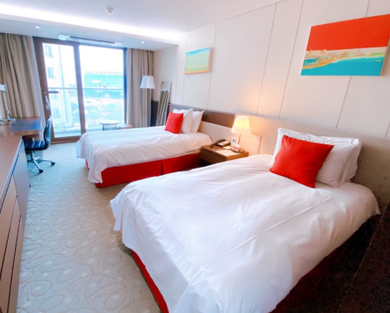 ㆍ숙소명 : 라마다제주함덕호텔 ㆍ조식 포함 여부 : 불포함 ㆍ주소 : 제주특별자치도 제주시 조천읍 신북로 470 ㆍ숙소 전화번호 : 064-793-5500 ㆍ객실 타입 - 2인 이용 시 : 스탠다드 더블 또는 트윈 - 3인 이용 시 : 스탠다드 패밀리 트윈 또는 트리플 - 4인 이용 시 : 쿼드러플룸 ※ 당사 또는 숙소 사정으로 예약이 불가할 경우, 동급 숙소로 대체 안내가 진행됩니다. ※ 아래 객실 이미지는 고객의 이해를 돕기 위한 사진으로, 실제 이미지와는 다를 수 있습니다.
